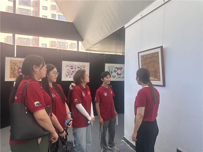 当天下午,实践队又邀请到吴起县文化馆的李红军教授,开启了一场别开生面的非遗文化之旅。队员们先后学习并体验了“吴起剪纸”、“吴起糜粘画”以及“农民画”等非遗文化传承的历史故事和制作技艺。李教授语重心长的讲:“咱民族画里的山川河流,蕴含着中国传统文化的灵魂。”当一幅幅融合了传统文化底蕴与现代审美意趣的作品呈现在眼前时,队员们被这份非遗文化与时代发展碰撞出的独特魅力深深触动,更真切感受到了中华优秀传统文化生生不息的生命力。