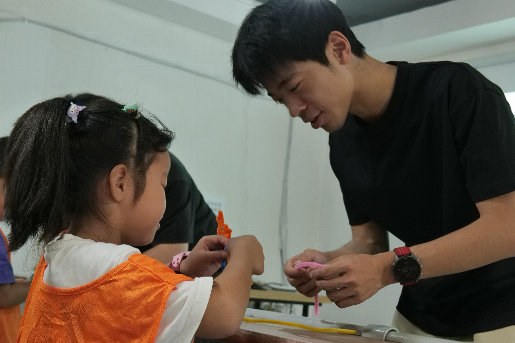图为团队志愿者手把手教社区孩子们制作手工 李凯强供图
