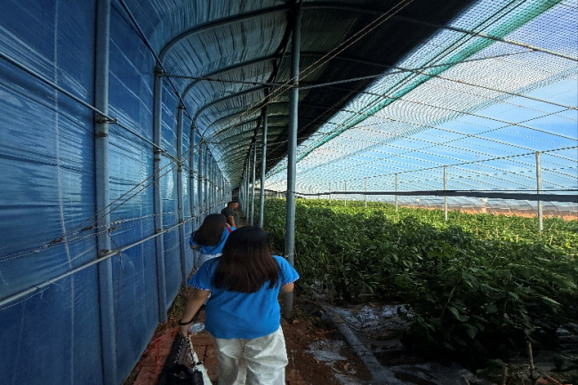 傍晚时分,实践团队来到当地羊肚菌种植基地,尽管此时并非羊肚菌生长季节,但大棚内辣椒、茄子、西红柿等时令蔬菜长势喜人。这片充满希望的土地,是葛浩顺书记当年带领村民打破贫困困局的起点。