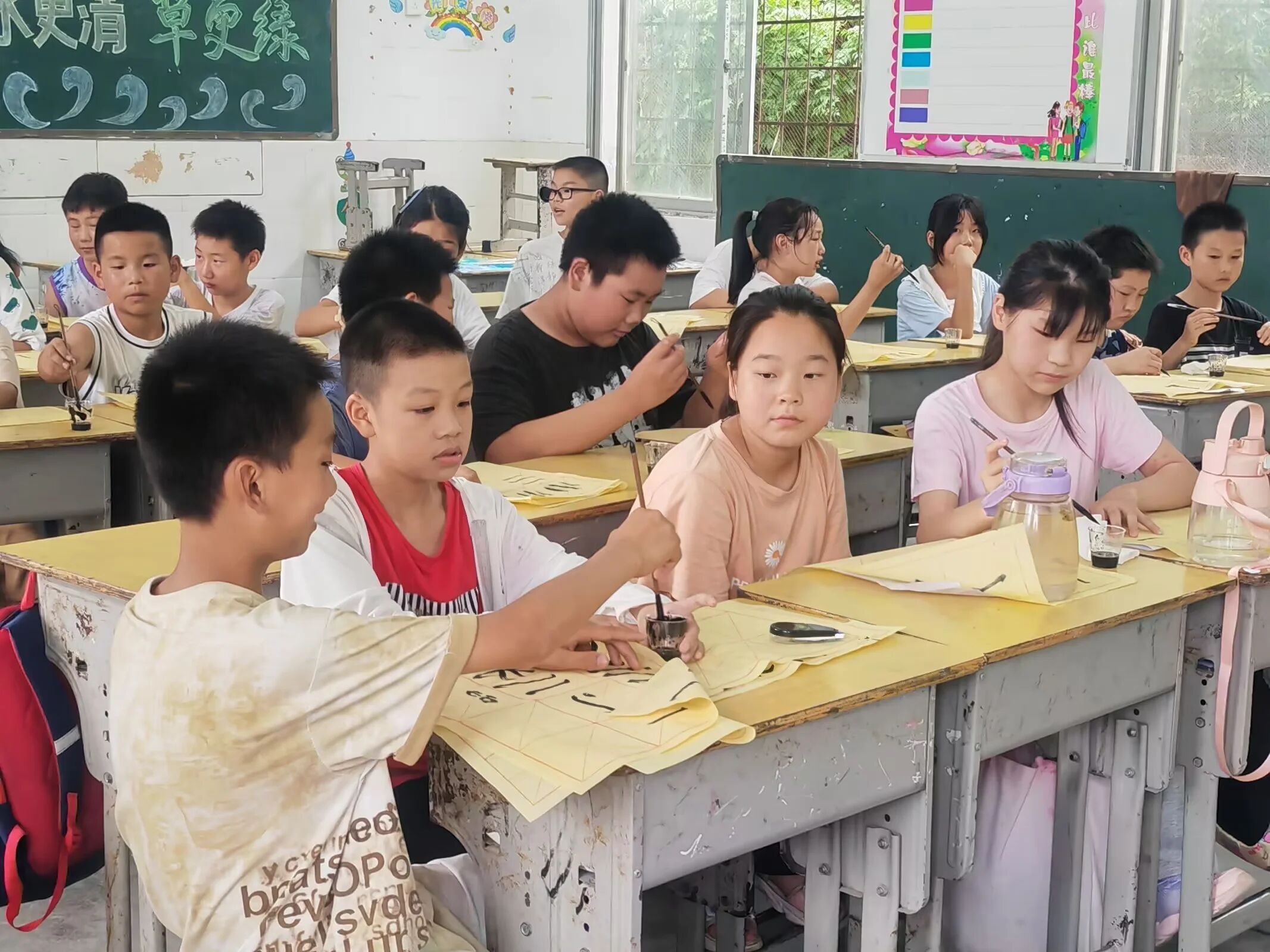 图为书法课上孩子们认真学习书法的场景。社会实践网通讯员 刘帆 供图
