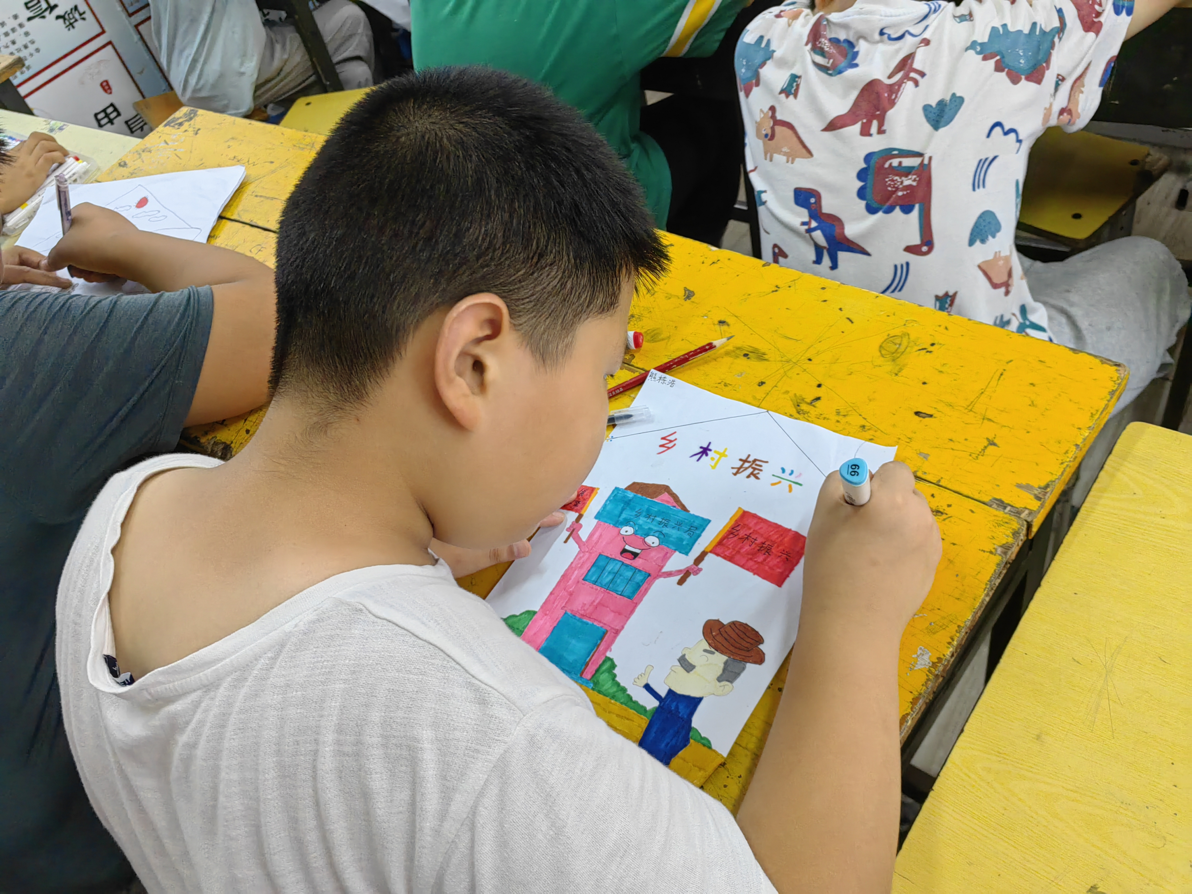 图为四五年级的同学们在上绘画课的场景。社会实践网通讯员 谭小雅 供图