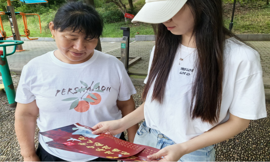 传递篇·纸间载道,文化播撒 宣讲之余,实践队成员实践队员分头行动,将精心设计的宣传页发放到居民和商铺店主手中。在发放宣传页的过程中,实践队成员遇到了许多对传统文化感兴趣的居民和店主。他们纷纷表示会认真阅读并分享给更多人,这种积极的反馈让实践队成员倍感欣慰。实践队成员深知,文化的传承需要每一个人的参与和努力,而今天实践队成员所做的这一切,正是为了汇聚这股强大的力量。