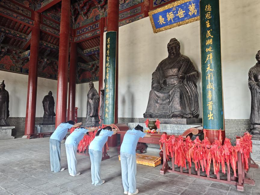 图为成员们参观应天书院崇圣殿孔子像。 程果 供图