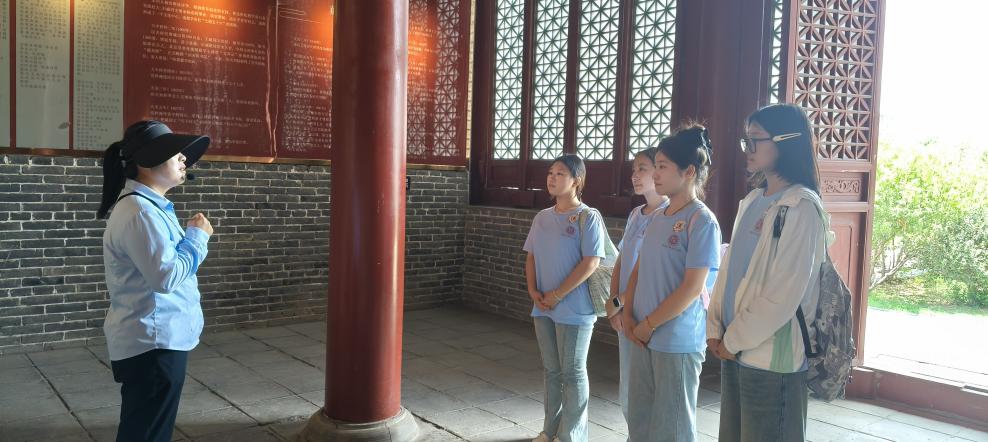 实践团队一行5人,甫入应天书院古朴庄重的院落,便被其厚重的历史气息所包裹。学子们跟随专业讲解员,系统考察了状元桥、崇圣殿、范仲淹纪念馆等核心空间布局,深入了解范仲淹在成才,育才背后的故事。在古朴的范仲淹纪念馆内,学子们仿佛穿越时空,静心聆听了讲解员还原古代讲学的场景,深刻体会到范仲淹“九河我吞,百谷我尊,浮云我决,良玉我切”的气概,以及应天书院“经世致用,以天下为己任”的教学理念。团队成员刘佳绮感叹道,“最打动我的是它强调的师生紧密‘共学共修’,这不正是现代书院制追求的‘社区化育人’原型吗?”