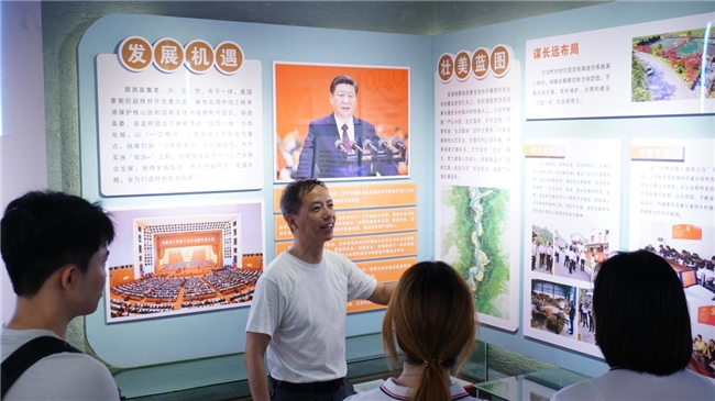 在村史馆中,实践团成员通过图文展板、实物陈列和讲解员介绍,深入了解了沙沟村的振兴历程。2018年,郧西县委、县政府立足沙沟村“边关文化、茶马古道、农耕文明”的资源禀赋,提出打造“农耕文旅·田园沙沟”的战略部署。关防乡党委政府以党建引领为核心,通过“决策共谋、发展共建、成果共享”模式,仅用两年多时间便完成项目建设,成功创建仙河湾国家3A级旅游景区,并获评“湖北省农村环境综合治理示范村”等荣誉称号。